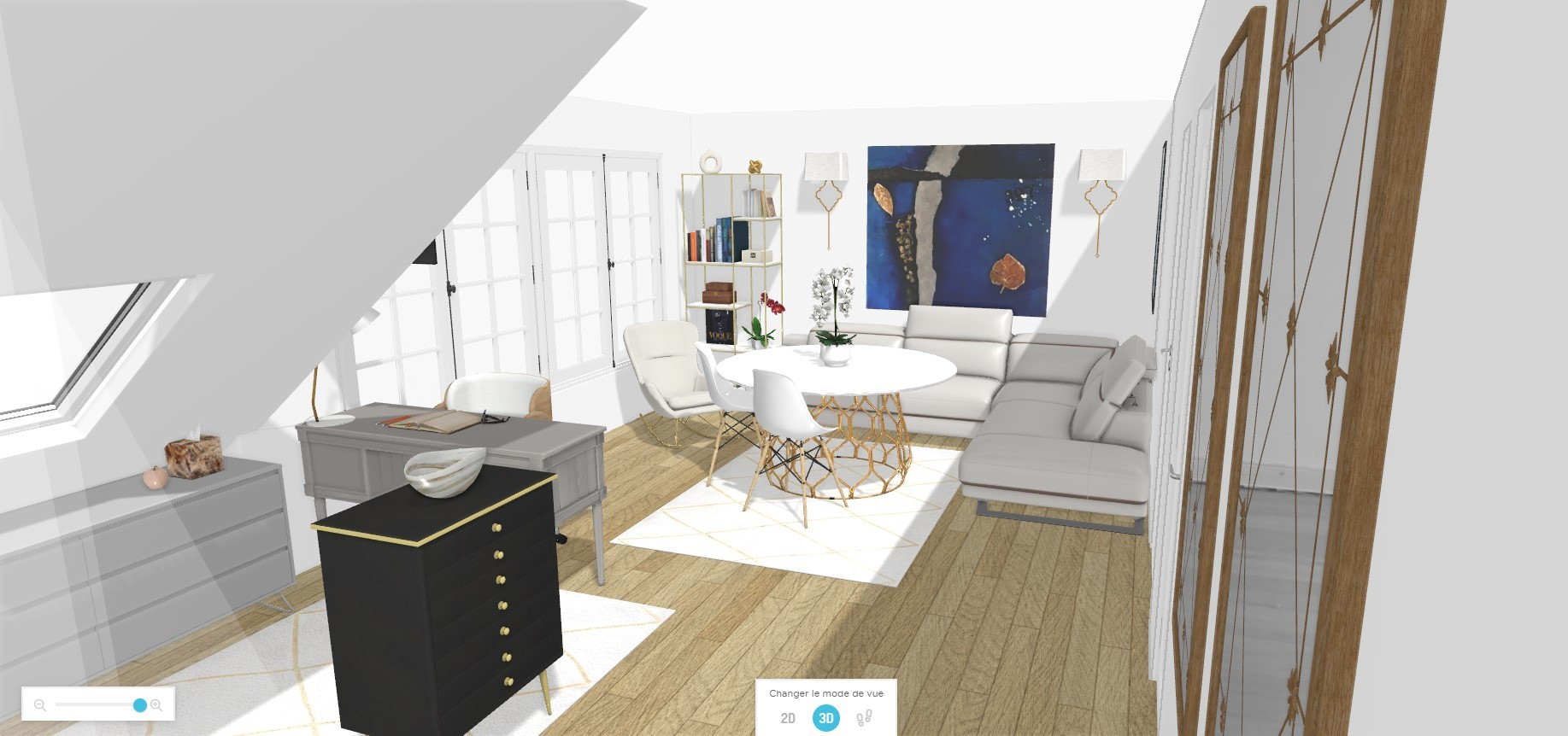 Notre intervention la plus courante est le coaching aménagement, qui se révèle très utile pour des espaces aux plans non-standards, tels que les espaces sous mansardes dans les imeubles haussmanniens, ou le changement d'usage des pièces. Nous proposons 2 à 3 options d'aménagement correspondant aux souhaits du client.